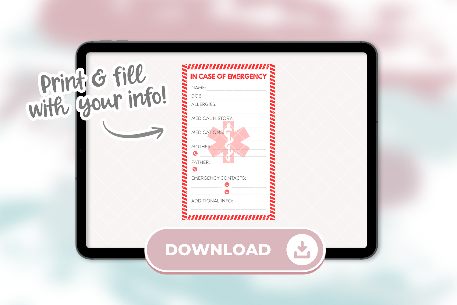 Perfect to display emergency info where you need it most – car seats, backpacks, lunch kits and more!